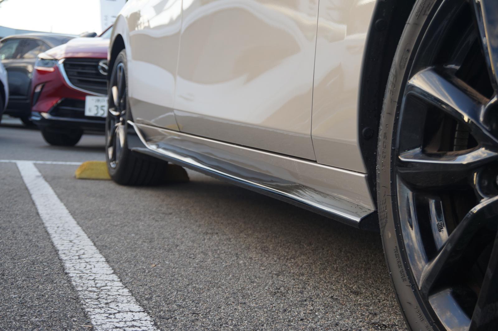 フルエアロ フロントスポイラー、リアスポイラー、サイドステップというエアロパーツ3点が揃って装備されています。