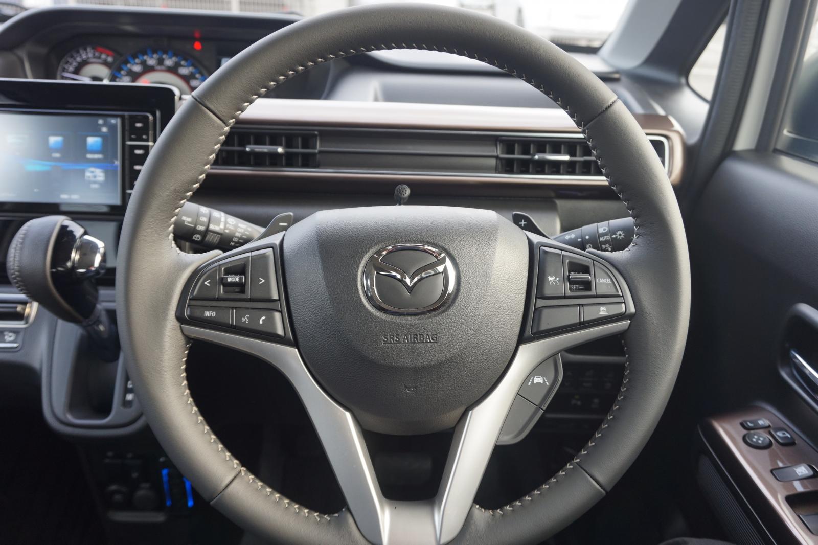 パワーステアリング 油圧や電気モーターの力で、運転者がステアリングホイールで操舵するのをアシストする機構が装備されています。