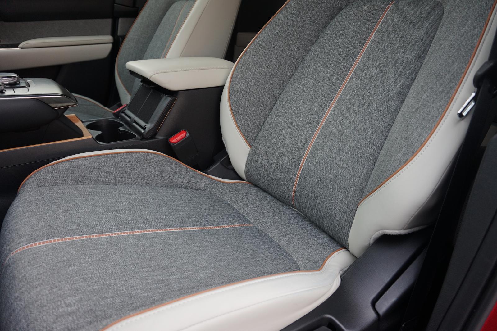ベンチシート 前席シートが完全には独立しておらず、長椅子状につながって見える構造になっています。