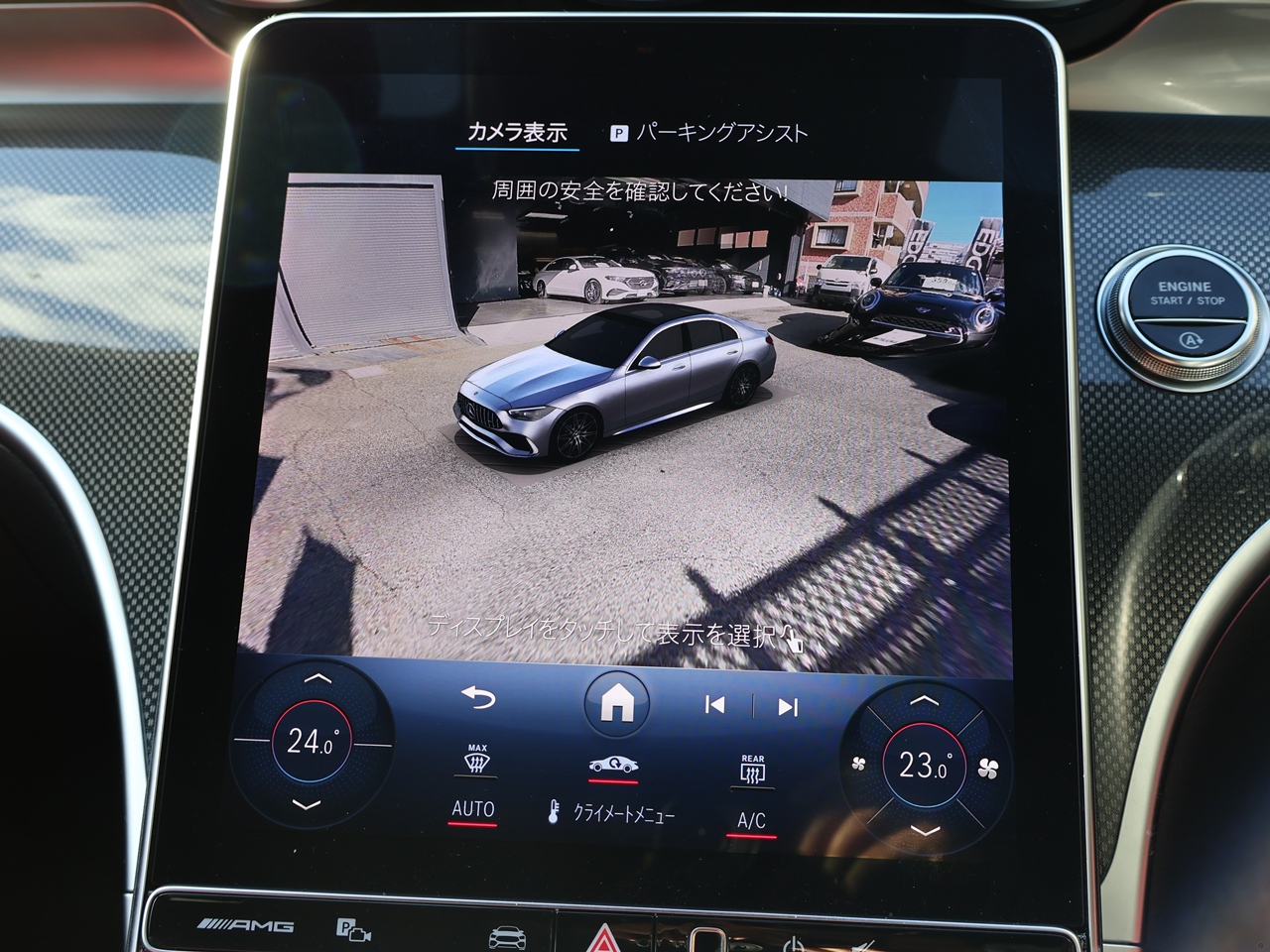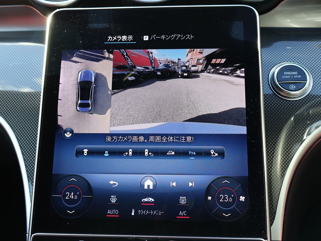 全周囲カメラ フロントグリル、左右ドアミラー、リアライセンスプレートなどに広角カメラを備え、周囲360度の状況を把握できるカメラが装備されています。
