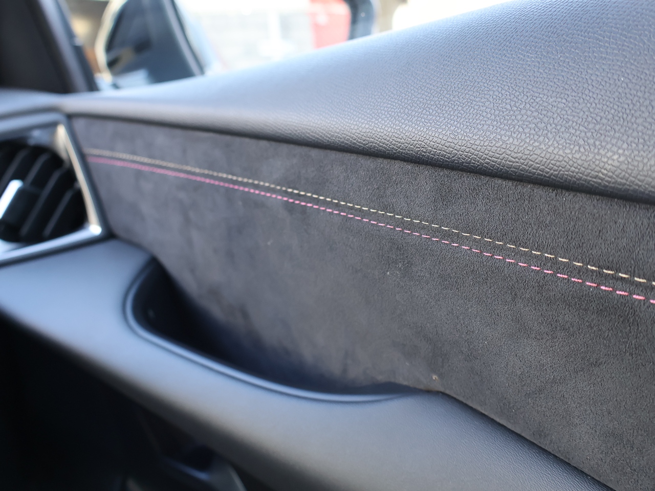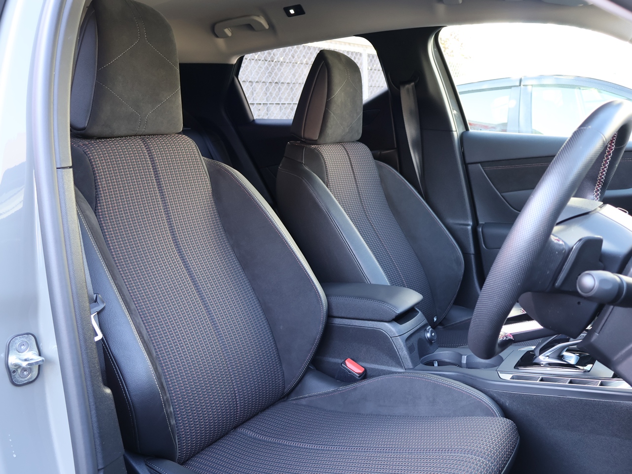 ハーフレザー シートの一部分が革張りになっています。
