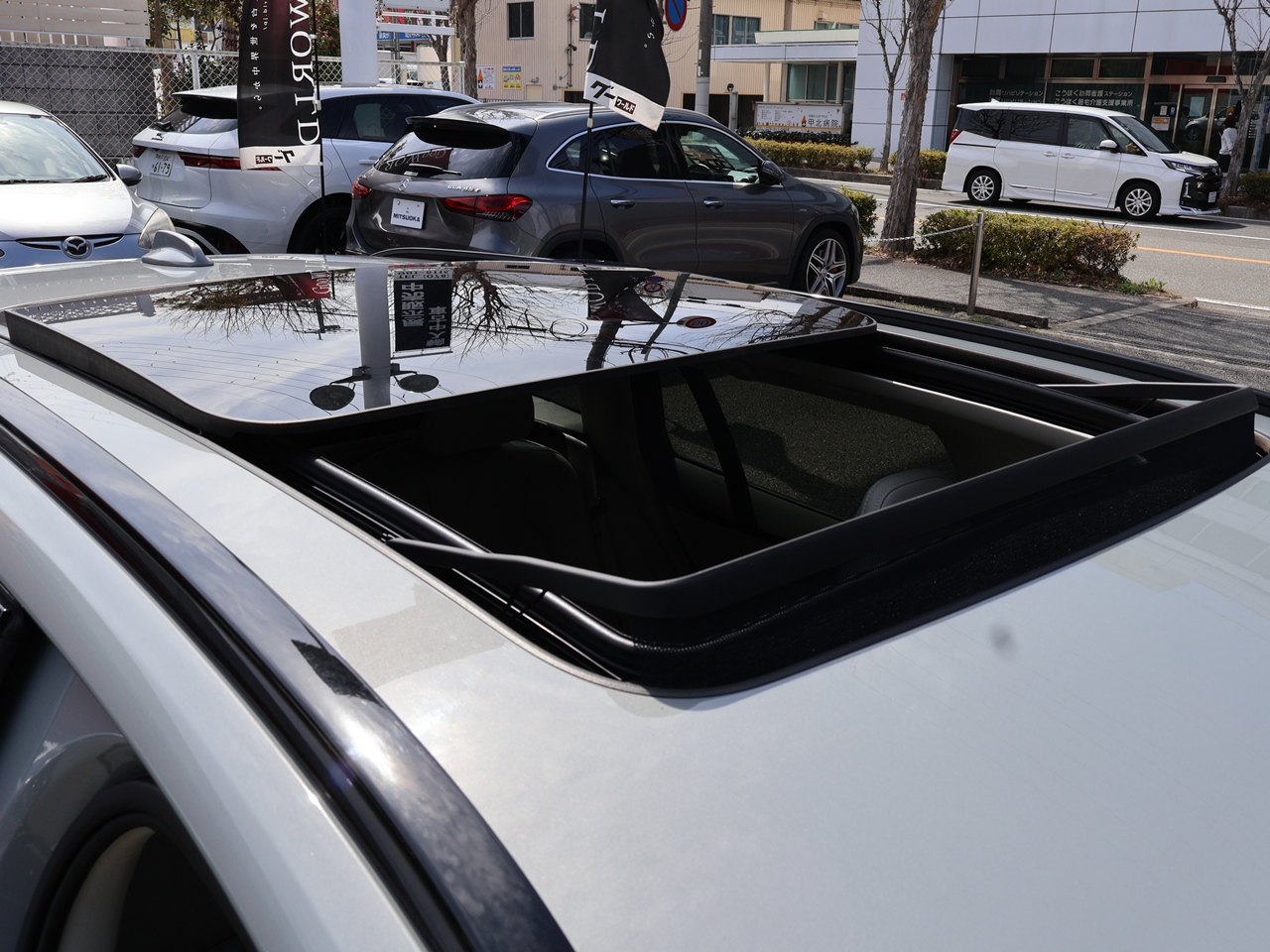 サンルーフ/ガラスルーフ 屋根の一部が開閉する装置が付いています。 ガラスルーフは、基本的に屋根の開閉できないですが、一部の車種では開閉できるタイプの車両もあります。